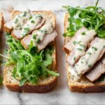 Feel free to add extra flair with a few fresh basil leaves on top or a light sprinkle of flaky sea salt over the pork strips. Pickled red onions or thinly sliced radishes add a delightful crunch and tang that can elevate this sandwich experience.