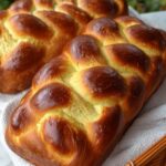 Portuguese Easter Bread is a traditional sweet yeast bread braided beautifully and enriched with warm milk, butter, eggs, and plump raisins soaked in boiling water. This soft, golden bread is perfect for festive occasions or as a delightful treat with butter or jam.