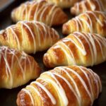 - Bake Crescents: Place the baking sheet in the preheated oven and bake for 12 to 15 minutes, or until the crescents turn golden brown and are cooked through. Remove from the oven and allow them to cool slightly on the baking sheet before glazing.