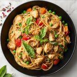 This Chicken Lo Mein recipe features tender chicken breast stir-fried with fresh vegetables and cooked lo mein noodles, all tossed in a flavorful sauce made from soy, oyster, and hoisin sauces. Easy to prepare in under 40 minutes, this dish is a perfect weeknight meal bursting with savory Asian flavors and a satisfying mix of textures.