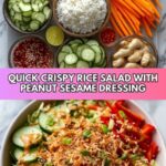 This Quick Crispy Rice Salad with Peanut Sesame Dressing is a delightful fusion dish featuring crispy pan-fried jasmine rice combined with fresh crisp vegetables and a creamy, flavorful dressing made from peanut butter and sesame oil. Perfect for a light lunch or side, the salad balances crunchy textures with tangy, sweet, and spicy notes, all tossed in a vibrant dressing with hints of ginger and lime.