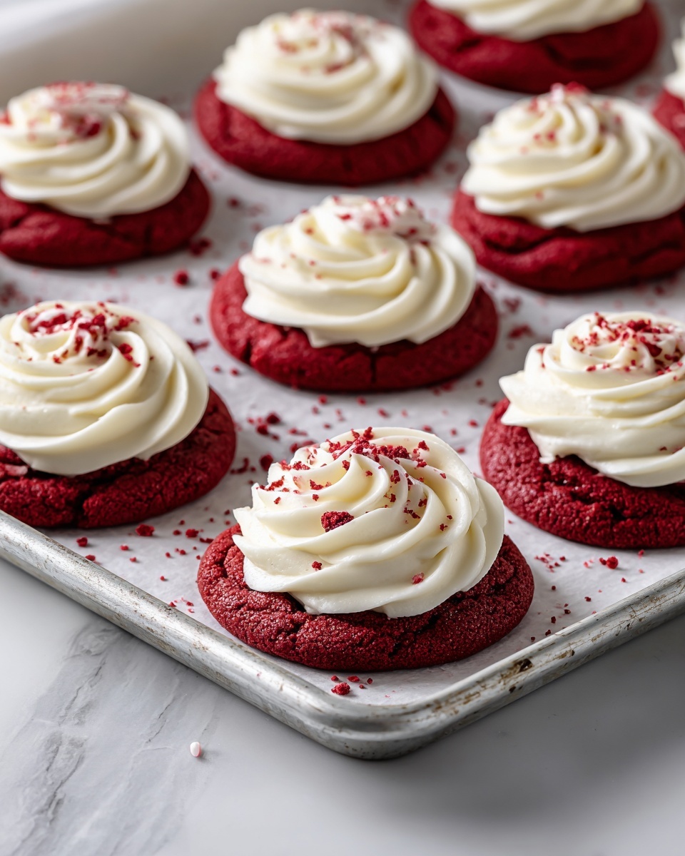 A light dusting of powdered sugar or a drizzle of white chocolate over these red velvet cupcake cookies adds an elegant touch that elevates their festive look and taste. Fresh raspberries or a sprinkle of finely chopped nuts can also offer a delightful contrast in texture and flavor.