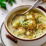 Start by preheating your oven to 425°F (220°C). Toss those beautiful cauliflower florets with olive oil, salt, and pepper, then spread them out on a baking sheet. Pop them in the oven for 20-25 minutes until they turn golden and caramelized—this roasting step transforms the cauliflower’s flavor profile and gives the soup a rich depth you’ll adore.