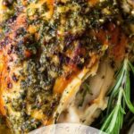 This Roasted Turkey Breast with Garlic and Herbs recipe features a tender bone-in turkey breast seasoned with a fragrant blend of garlic, sage, rosemary, thyme, and parsley. The turkey is roasted to perfection with a golden, flavorful butter herb crust, making it a delicious and elegant main dish perfect for family dinners or special occasions.