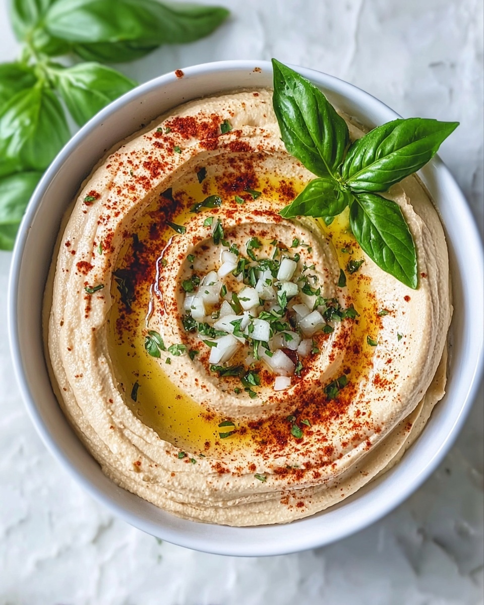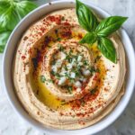 This hummus pairs beautifully with warm pita bread, crisp vegetable sticks like carrots and cucumbers, or crunchy crackers. It’s versatile enough to be both an elegant appetizer at a party or a casual afternoon snack with friends.