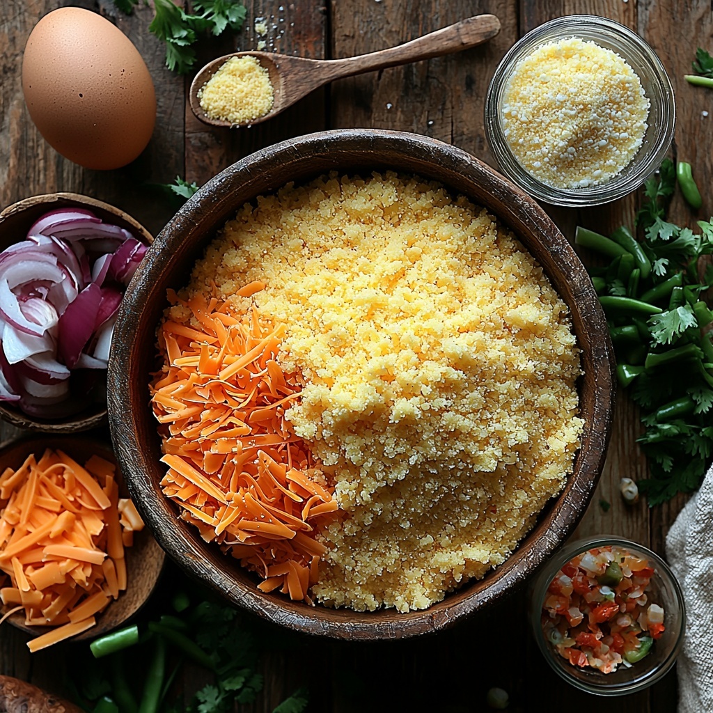 Gathering simple, staple ingredients is what makes this recipe approachable yet packed with vibrant flavors. Each component plays a key role: cornmeal brings the characteristic texture, the vegetables add freshness and a welcome crunch, while crawfish and cheese create a hearty, deeply savory profile. The balance here is everything, making each bite a delightful symphony of taste and color.