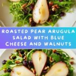 Serve the salad on a rustic wooden board or in vibrant bowls to highlight its colors. Layer the ingredients to showcase the golden roasted pears nestled on a bed of dark green arugula, dotted with crumbled blue cheese and toasted walnuts. Individual salads on small plates with edible flowers or microgreens also make for an elegant presentation at dinner parties.