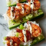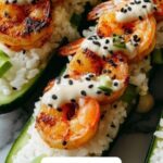 These Shrimp Avocado Cucumber Boats are a fresh and flavorful appetizer perfect for warm weather gatherings or a light lunch. Juicy, seasoned shrimp are cooked to perfection and nestled into crisp cucumber boats filled with creamy mashed avocado, tangy lime juice, and sushi rice. Topped with a spicy Kewpie mayo drizzle and toasted sesame seeds, this recipe brings a delightful combination of textures and tastes with minimal fuss.