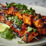 As soon as the chicken is nicely cooked through and caramelized on the edges, remove from the grill. Let the skewers rest briefly, then garnish with fresh chopped cilantro and lime wedges for a fresh and tangy finish. This final touch adds a pop of color and a spark of flavor that makes the dish truly irresistible.