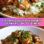 This Smothered Chicken and Rice recipe features tender bone-in, skin-on chicken thighs cooked to golden perfection atop a creamy, flavorful bed of rice infused with garlic, onion, and herbs. Baked together in one skillet, this comforting Southern-inspired dish delivers rich, savory flavors and a satisfying texture, perfect for an easy weeknight dinner or cozy weekend meal.
