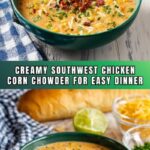A hearty and flavorful Southwest Chicken Corn Chowder featuring tender chicken, crispy bacon, fresh vegetables, and a creamy, cheesy base with a hint of spice. This comforting soup combines the zest of jalapenos and chilies with the sweetness of corn and the richness of half and half, perfect for a filling meal.