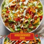 This vibrant Southwest Salad with Cilantro Ranch Dressing combines tender, spiced chicken with crisp romaine, fresh vegetables, black beans, corn, and creamy shredded cheddar. Topped with crunchy tortilla strips and a zesty homemade cilantro ranch dressing, it’s a flavorful and satisfying meal perfect for lunch or dinner.