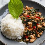 Try serving the Spicy Thai Basil Chicken (Pad Krapow Gai) Recipe in a lettuce wrap for a fresh, handheld version or mound fragrant jasmine rice in a bowl and nestle the chicken beside a scoop of cooling coconut yogurt. These presentations add fun and variety when sharing the dish with friends and family.