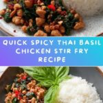 A bold and flavorful Spicy Thai Basil Chicken (Pad Krapow Gai) recipe featuring tender chicken thighs stir-fried with aromatic garlic, shallots, and fiery chilies, glazed with a savory-sweet sauce and fresh basil. This quick and easy Thai street food classic is perfect served over steaming hot rice for a satisfying meal.
