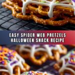 Create spooky and delicious Spider Web Pretzels, a no-bake Halloween treat featuring pretzel ‘webs’ drizzled with melted white chocolate, topped with mini cookies or truffles as spider bodies, candy eyes, and chocolate legs. Perfect for festive parties and fun edible crafts.