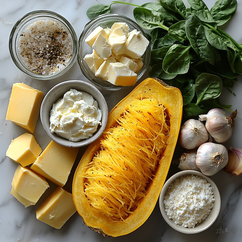 This Spinach Artichoke Spaghetti Squash with Chicken Recipe shines thanks to its straightforward yet well-balanced ingredients. Each one plays a special role, from the creamy Greek yogurt giving tang and body, to the fresh spinach adding a vibrant green punch, and the artichokes lending a subtle earthiness. Let’s dive into the essentials you’ll gather to create this crowd-pleaser.