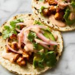 The garnish is where you can really personalize these tacos to your taste. I love pickled red onions for their tang and crunch, but plain chopped red onions work beautifully if you’re short on time. Fresh cilantro sprinkled on top adds herbaceous brightness, and a few slices of creamy avocado round out the texture and cool down the heat from the chipotle mayo. Don’t forget those lime wedges—they bring that perfect final citrus kiss.
