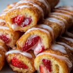 Delightfully crispy and creamy, these Strawberry & Cheesecake Stuffed Eggroll Bites combine the luscious flavors of sweet cheesecake filling and fresh strawberry compote, wrapped in golden-fried eggroll wrappers and finished with a smooth vanilla glaze. Perfect as a fun appetizer or a sweet treat for any occasion.