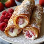 These Strawberry Cheesecake Eggroll Bites combine creamy cheesecake filling and sweet strawberry jam wrapped in crispy, golden eggroll wrappers. Perfect as a delightful dessert or party appetizer, they offer a crunchy exterior with a luscious, fruity interior, dusted with powdered sugar for an irresistible finish.