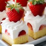 This dessert doesn’t freeze particularly well because the fresh strawberries and whipped cream lose their texture when thawed. To enjoy this recipe’s full magic, it’s best made fresh. However, you can freeze the cake cubes separately if needed.