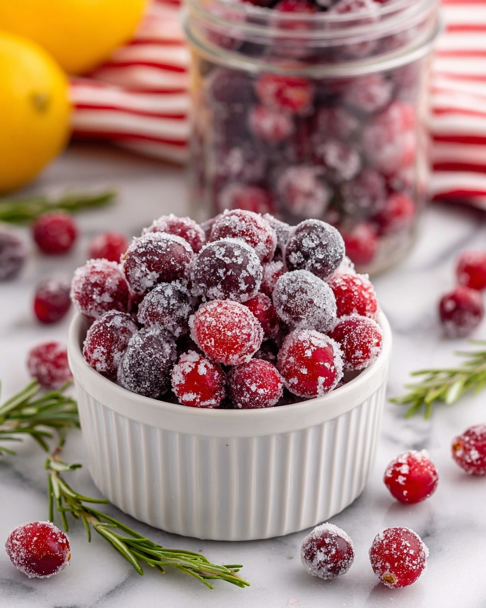 Use these sugared delights immediately to garnish your favorite dishes, or store them for later. They hold up beautifully, so you can keep them handy for whenever you need a little extra holiday sparkle.