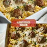 A comforting and hearty Swedish Meatball Noodle Bake featuring tender homemade meatballs simmered in a rich cream and beef broth sauce, layered over egg noodles, and topped with melted Swiss cheese. This one-dish meal is perfect for family dinners, combining classic Scandinavian flavors with the ease of a baked casserole.