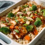 This Teriyaki Chicken Casserole is a flavorful and hearty dish combining tender chicken breast, fresh vegetables, and a homemade teriyaki sauce baked to perfection over a bed of rice. It’s an easy-to-make casserole that marries the sweet and savory notes of teriyaki with wholesome ingredients for a delicious family-friendly meal.