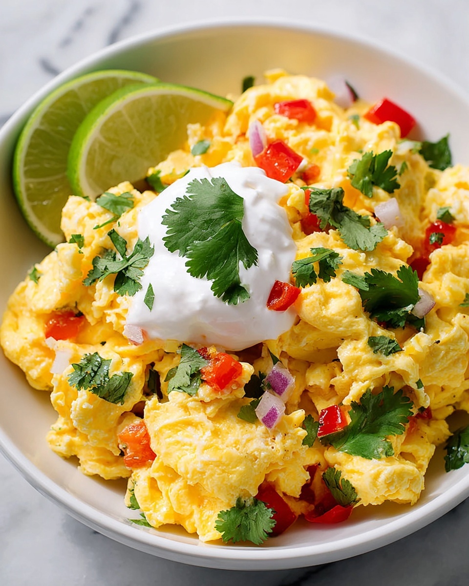 This Tex-Mex Migas recipe is a vibrant and hearty breakfast dish featuring fluffy scrambled eggs mixed with sautéed peppers, onions, crispy tortilla chips, and melted cheddar cheese. Enhanced with traditional seasonings and fresh garnishes, it’s perfect served on its own or wrapped in warm tortillas for a satisfying morning meal.