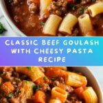 This classic goulash recipe combines ground beef, tender elbow macaroni, and a rich tomato-based sauce infused with paprika and herbs. It’s a hearty and comforting one-pot meal that’s perfect for busy weeknights, delivering a satisfying balance of savory flavors and simple ingredients. Topped with melted cheddar cheese and fresh parsley, this dish is both flavorful and easy to prepare.