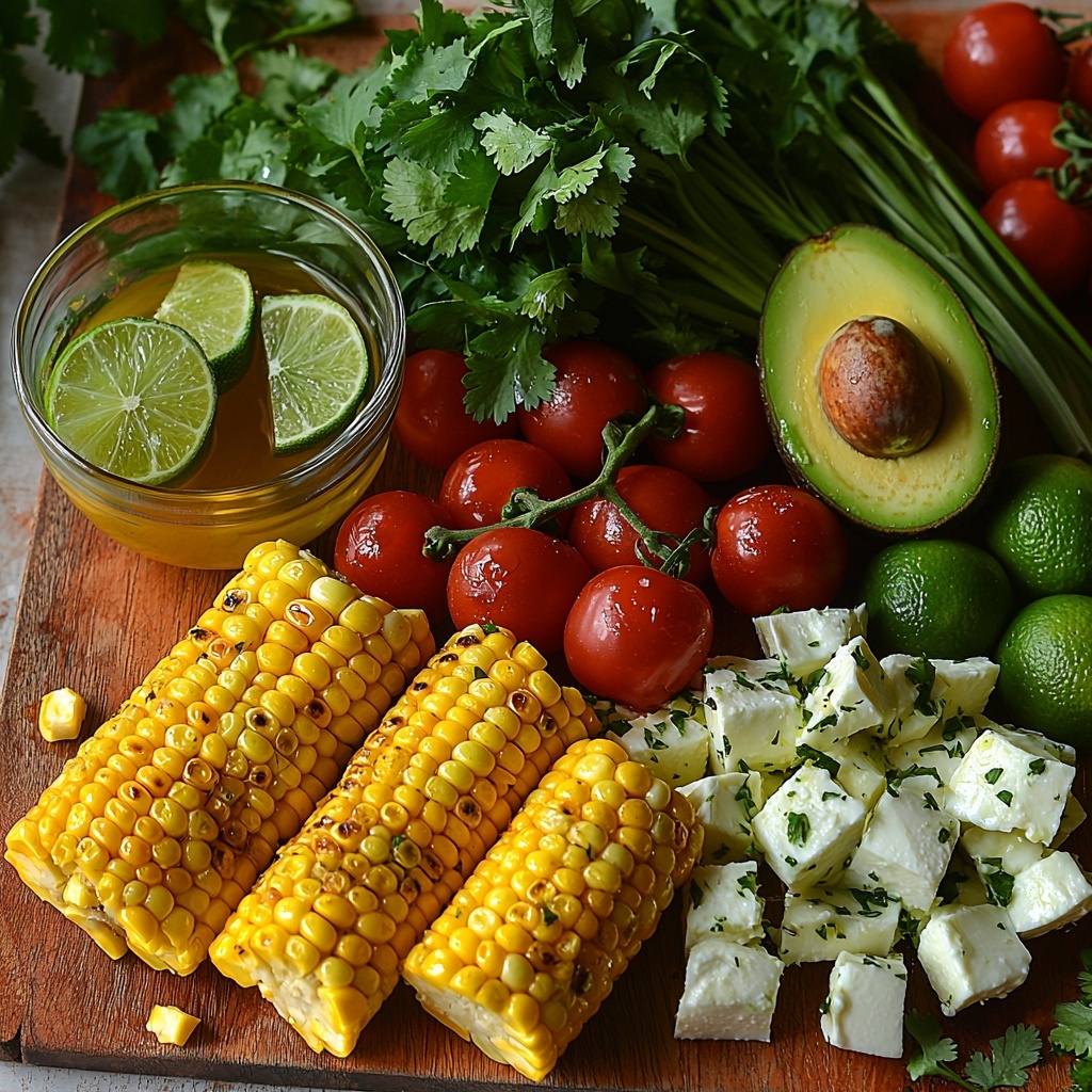 A vibrant and fresh Tomato, Mozzarella, and Grilled Corn Salad featuring a zesty cilantro-lime dressing. This salad combines the sweetness of grilled corn with juicy tomatoes, creamy mozzarella, and ripe avocados for a perfect summer dish that’s easy to prepare and full of bright flavors.