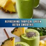 This Tropical Green Detox Smoothie combines fresh pineapple, banana, mango, spinach, cucumber, and invigorating ginger, blended with coconut water for a refreshing and nutritious beverage. Perfect for a quick energy boost, hydration, and digestion support, this vegan smoothie is both creamy and vibrant with tropical flavors.