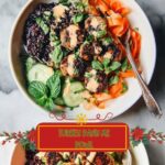 A vibrant and flavorful Turkey Banh Mi Bowl combining savory ground turkey meatballs with pickled vegetables, fragrant herbs, and purple sticky rice or quinoa. This dish is inspired by the classic Vietnamese sandwich but served as a fresh, deconstructed bowl perfect for a quick and satisfying meal.