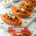 - Assemble: Spoon the turkey taco filling evenly into each sweet potato.