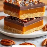 While these bars shine on their own, adding a sprinkle of sea salt flakes atop the chocolate layer before it sets can elevate the flavor by enhancing the sweet and nutty notes. For a festive touch, try scattering some crushed toasted pecans or a drizzle of caramel sauce.