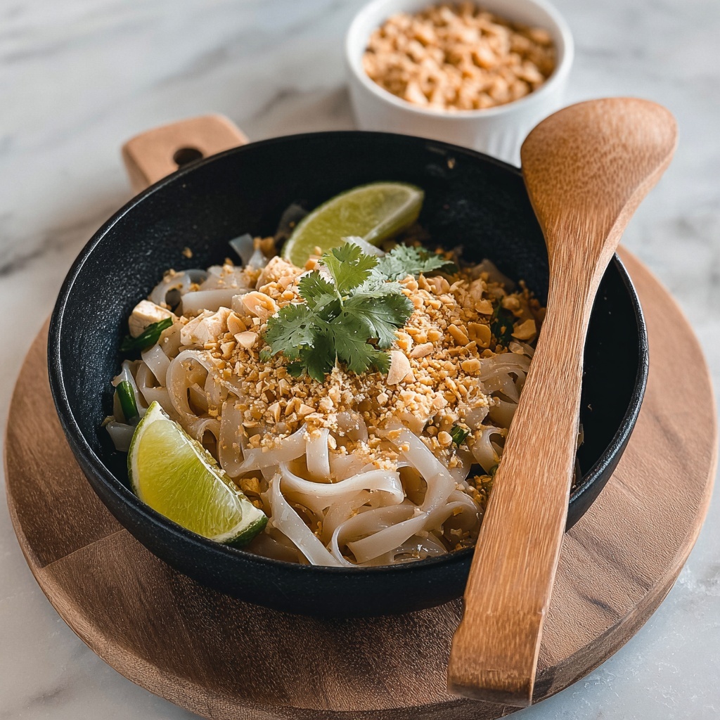 Finally, sprinkle the chopped peanuts and thinly sliced green onions over the top and mix lightly. These finishing touches bring that nutty richness and fresh brightness that make the Vegetable Pad Thai Recipe truly stand out.