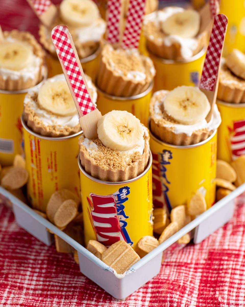 - Mini vanilla wafer bags are a fun, portable way to serve this dessert but regular small cups or jars can be substituted.