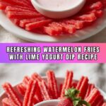 Serve the watermelon fries in individual cups with a dollop of lime yogurt dip on top for a fun, portable snack option. For parties, create a beautiful platter layered with other fruit “fries” such as pineapple or mango alongside the watermelon, making this recipe a colorful, interactive centerpiece.