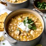 The magic of this White Bean Chicken Chili Recipe really shines with fresh garnishes. Chopped cilantro adds a burst of color and herbal freshness, shredded cheese melts in for indulgence, creamy avocado slices bring rich contrast, and a handful of crispy tortilla chips adds delightful crunch.