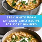 For a fun twist, serve your chili in small bowls topped with a dollop of sour cream and sliced jalapeños for heat. Or turn it into a chili-stuffed baked potato by scooping the chili right onto a split spud, crowned with cheese and chives. The possibilities for this White Bean Chicken Chili Recipe are endless and delicious!