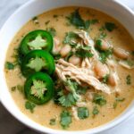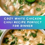This comforting White Chicken Chili recipe combines tender chicken, creamy cannellini beans, and a blend of spices, simmered to perfection for a flavorful and hearty dish. Topped with Monterey Jack cheese, fresh jalapeños, lime wedges, and cilantro, this chili is perfect for gatherings or a cozy meal.