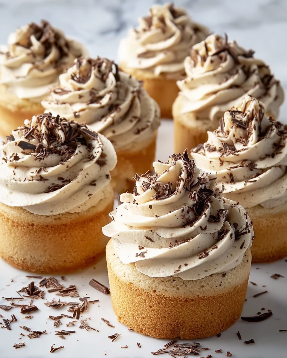 Fill a piping bag fitted with a large star tip with your luscious buttercream. Pipe generous swirls atop each cooled cupcake. For that final flourish, sprinkle with chocolate shavings if you have them — they add a subtle crunch and an elegant, chocolaty contrast. Your White Russian Cupcakes with Kahlúa and Espresso Frosting Recipe are now ready to steal the show!