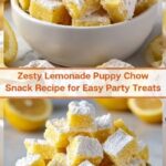 This Zesty Lemonade Puppy Chow Snack offers a bright, citrusy twist on the classic puppy chow treat. Made with crunchy rice Chex cereal coated in a luscious lemon-infused white chocolate mixture and dusted with a tangy powdered lemonade and sugar blend, this no-bake snack is perfect for parties, kid-friendly treats, or anytime you want a refreshing sweet bite with a hint of lemon zing.